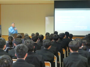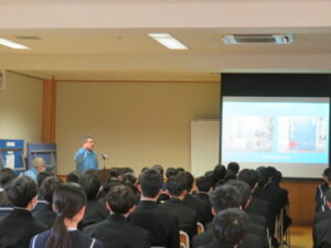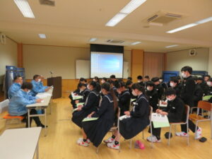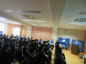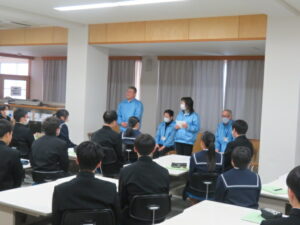 本日、2年生を対象に、千島歯舞諸島居住者連盟富山支部の濵松事務局長をはじめ、8名の講師の方々をお招きし、「北方領土学習会」が行われました。