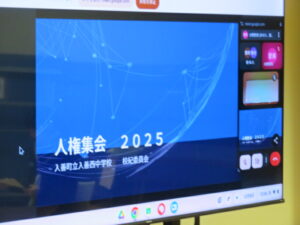 12月4日(木)~12月10日(水)の1週間を「第77回人権週間」と定め、全国各地で多数のイベントが予定されています。入善西中学校でも、本日、人権擁護委員の方々4名をお招きし、オンラインによる「人権集会」が行われました。