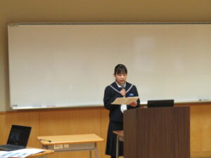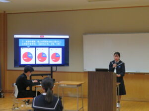 今回は校紀委員会のみなさんが中心となり、『SNS』の利用について、みんなで考えました。事前に取ったアンケートの結果を紹介したり、世界のSNS規制の動きについて紹介したりしてもらいました。