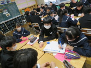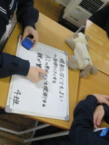 そして、社会全体のSNSの規制について、クラスで話し合う時間もとりました。規制については、賛否両論でしたが、今一度、SNSの利用について振り返り、他者を傷つけない、正確な情報を見極めるなどといった基本的な姿勢を大切にし、SNSをよりよい形で活用できる社会を目指していってもらえたらと思います。