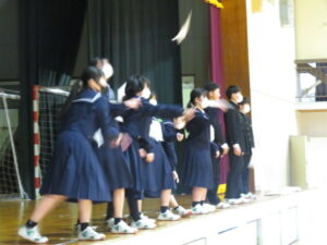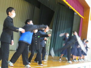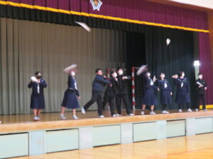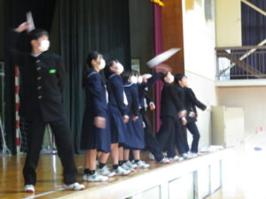 生徒指導主事からのお話では、とあるマンガでは「人間の本質は『火』だ」と言っており、その中でも「命の『火』」と「思いの『火』」があることをお話しされ、この冬休みも自分の「命」は自分でしっかり守ってほしいこと、そして1年を振り返り、新年を迎えるにあたり、「思い」を大切にしてほしいことを話されました。