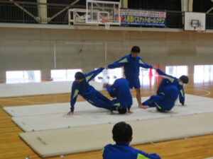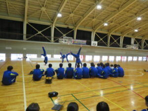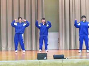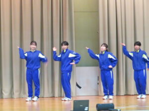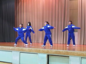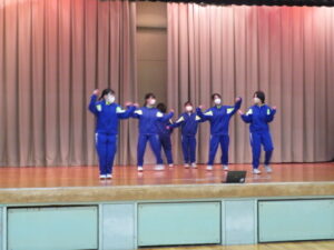選択体育発表会~3年生~ 2026年1月20日 学校からのお知らせ 12月から3年生の選択体育で取り組んでいる、マット運動(シンクロマット)とダンスの発表会が本日行われました。マット・ダンスにおいて、それぞれ息の合った、そしてレベルの高い演技やダンスを披露していました。 どのグループも表現豊かな動きを披露し、見ている方も盛り上がることができました。