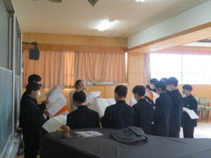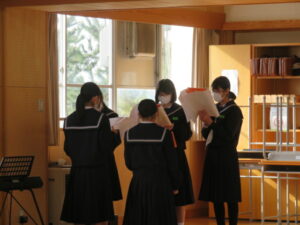 1年生の音楽の時間では、卒業式の合唱練習をしました。