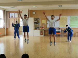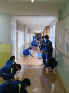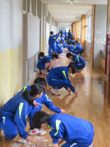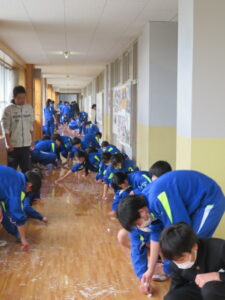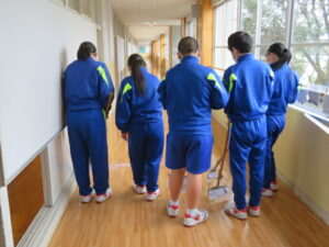 今日の授業風景 2026年3月18日 学校からのお知らせ 令和7年度も、子供たちが登校する日は残すところあと3日となりました。 今日も保健体育科の授業では、1年生も2年生もダンスの発表会をしていました。 また、午後からは1年間お世話になった各学年の廊下磨きを行い、ワックスがけをしました。ピカピカになり、次に上がってくる学年に気持ちよく使ってもらえそうです。 【1年生】 【2年生】 【床磨き・ワックスがけ】