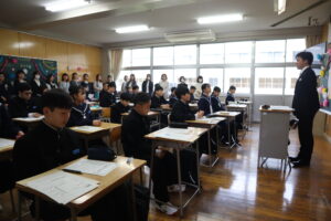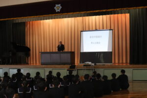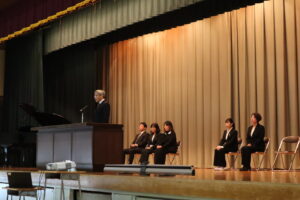 4月8日始業式の様子 2026年4月13日 学校からのお知らせ 先週8日(水)に新学期がスタートしました。新たに着任された校長先生からは、 ①自分の考えをもつこと ②人にやさしくすること ③挑戦すること を大切にしてほしいとの願いが語られました。 偉大なスポーツ選手でも一歩一歩小さなことを積み重ねてこその偉業であること、 粘り強く、何にでも挑戦してもらいたいことをお話しされました。 新たな1年に向かって、この3つを大切に過ごしていきましょう。