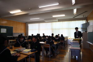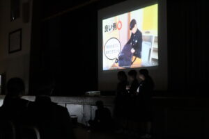 4月10日新入生歓迎会の様子 2026年4月13日 学校からのお知らせ 新入生歓迎会では一日の過ごし方を動画を交えてわかりやすく紹介しました。 委員長からの専門委員会の活動紹介を聞き、1年生はどの委員会で活動しようか考えていました。 午後に行われた第二部では部活動紹介が行われ、それぞれの部活動の個性を生かした紹介に 楽しそうな笑顔が見られました。 いよいよ部活動の仮入部が始まります。 よく考えて、自分が成長できる部活動を選びましょう。
