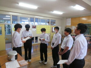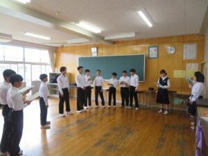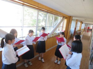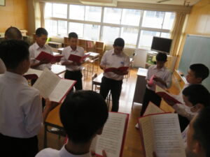 本日から、全校で合唱コンクールに向けたクラスごとの練習が始まり、学校中に歌声が響き渡っていました。練習が始まったばかりで、思うように計画的に進まないパートもありますが、みんなで話合いを重ねながら、素晴らしい合唱、そしてクラスの団結につながることを楽しみにしています。