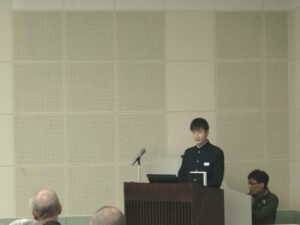 11月8日(土)、入善まちなか交流施設うるおい館で開催された「令和7年度 秋季研究例会」にて、本校2年生、笹島くんの研究発表が行われました。