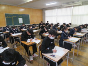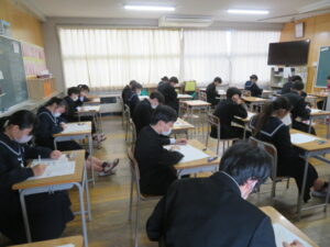 2学期の締めくくりとなる期末考査には、どの学年の生徒も問題に真剣に向き合っていました。残り二日間も、しっかり自分の力を発揮できるといいですね!