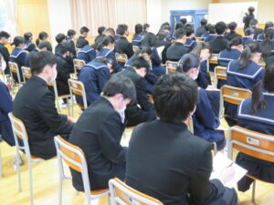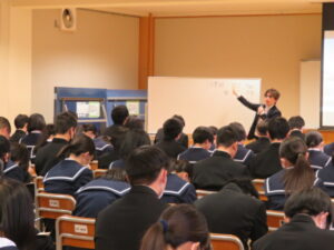 北陸税理士会魚津支部から辰巳様にお越しいただき、税理士の仕事についての話や、消費税についての話を分かりやすくしていただき、「税金」について考える時間となりました。