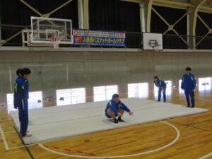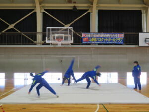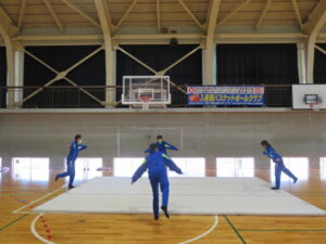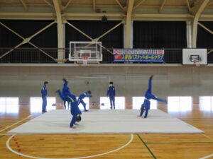 マット運動の発表会~2年生~ 2025年12月23日 学校からのお知らせ 本日、2年生の保健体育の時間にマット運動(シンクロマット)の発表会を行いました。 シンクロマットということで、グループで息を合わせながら、美しい演技を披露してくれました。