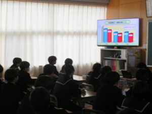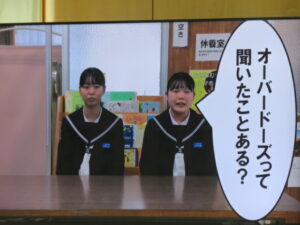 オーバードーズについての説明や、保健委員会で作成した劇を通して、クラスごとでオーバードーズをはじめとする依存症についての話合いもしました。