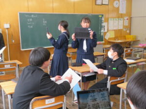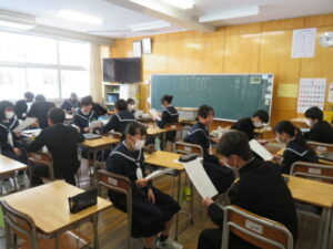 クラスを解体して、1~3組混合で、優しく相手に頼み事をする方法を身に付けるための「ソーシャルスキルトレーニング」をしました。それぞれの場面に応じた受け答えを考えながらロールプレイをしました。