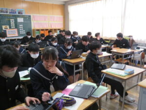 4ヶ月後に控えている「修学旅行」に向けて、調べ学習をしました。東京の観光名所や班別学習で訪れたい場所等をそれぞれ調べ、新しいタブレットで紹介文を作成しました。紹介文は仕上がり次第、廊下掲示します。