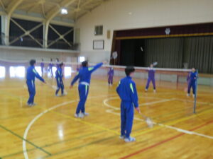 みんな、寒さも忘れて上手にラケットをさばいていました。