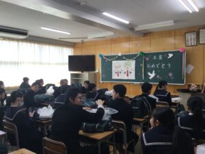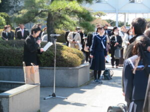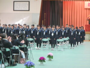 また、式では、在校生による合唱、そして卒業生による「旅立ちに日」の合唱が体育館いっぱいに響き渡り、在校生、卒業生の互いの思いが伝わる感動的なひとときとなりました。