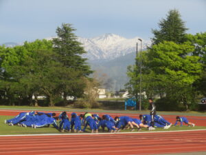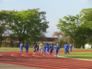 短距離や長距離のランニングや声出し、フォームの確認をしたり、