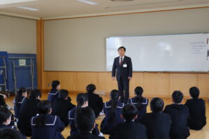 本日、2年生を対象に、千島歯舞諸島居住者連盟富山支部の濵松事務局長をはじめ、8名の講師の方々をお招きし、「北方領土学習会」が行われました。